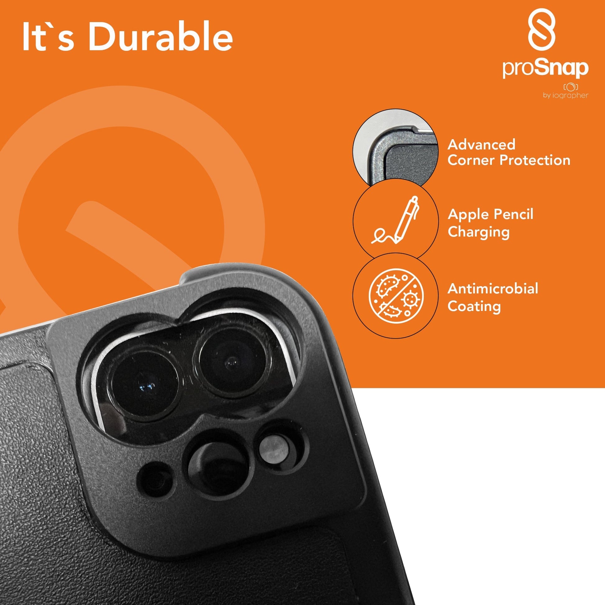 In recent years, mobile devices everyone has have evolved a lot in terms of the variety of uses, capabilities, and quality. You can even take awesome photographs and shoot incredible videos with something almost anyone can afford. In order to protect your device and enhance its capabilities we offer you the iOgrapher proSnap iPad Case. It is a new and exciting product that will turn your iPad into a professional photographer’s favorite and most reliable tool.