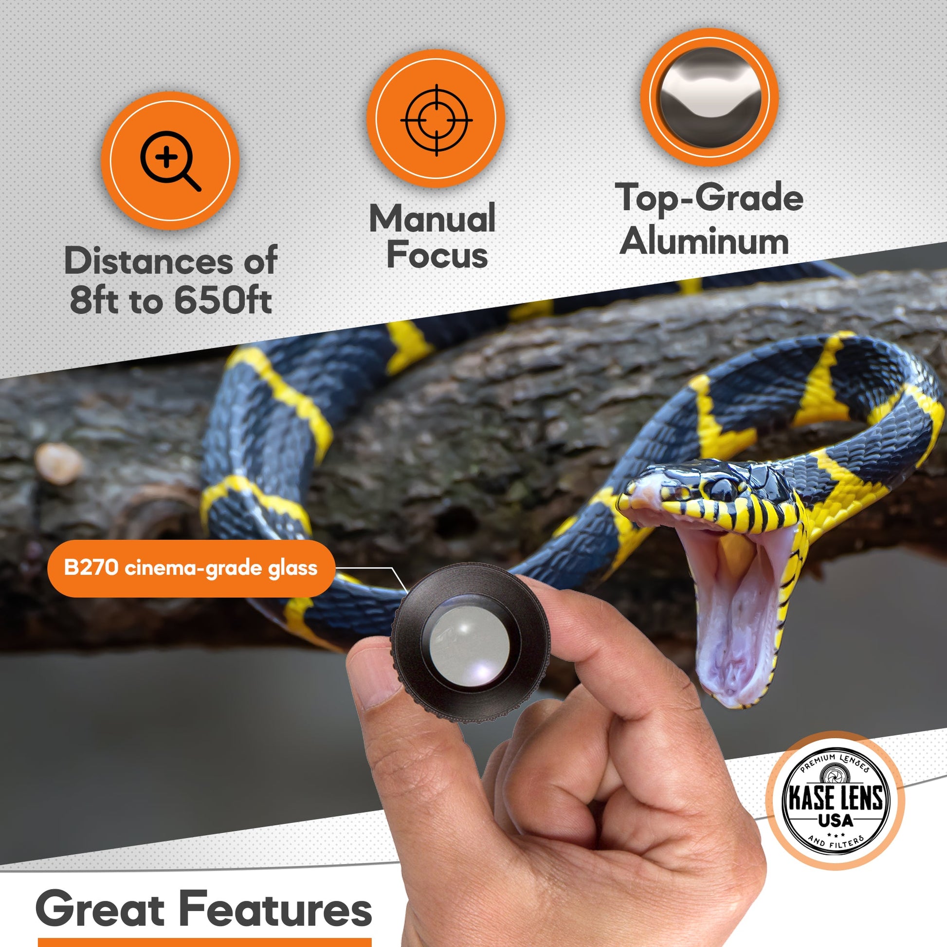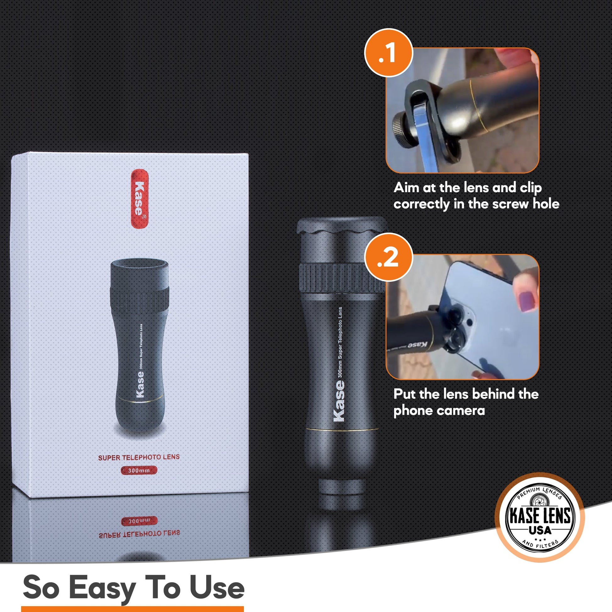 If you like to take photos and videos with your smartphone, you know how hard it is when you have to do it from a distance. We have a solution for that problem. We offer you the Kase 300mm Super Telephoto Lens. It is a new and exciting item that will let you capture amazing pictures and footage of nature, sporting events, concerts, and travel. The quality and the efficiency of this product will make it your favorite piece of equipment and very useful addition to your photography gear.