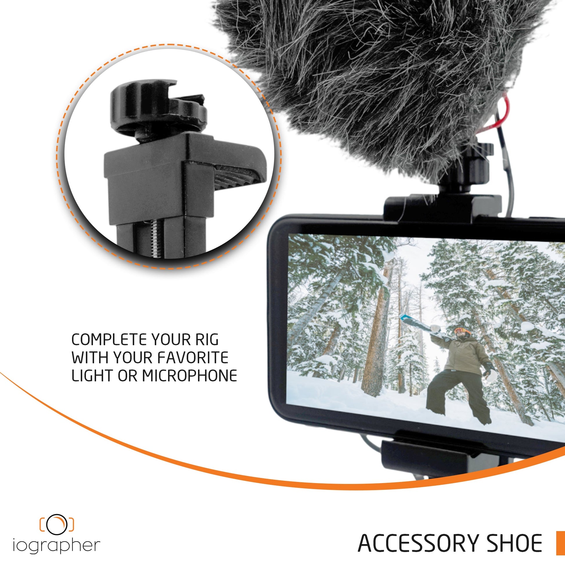 Complete your rig with your favorite light or microphone using the accessory shoe on top of the mount.